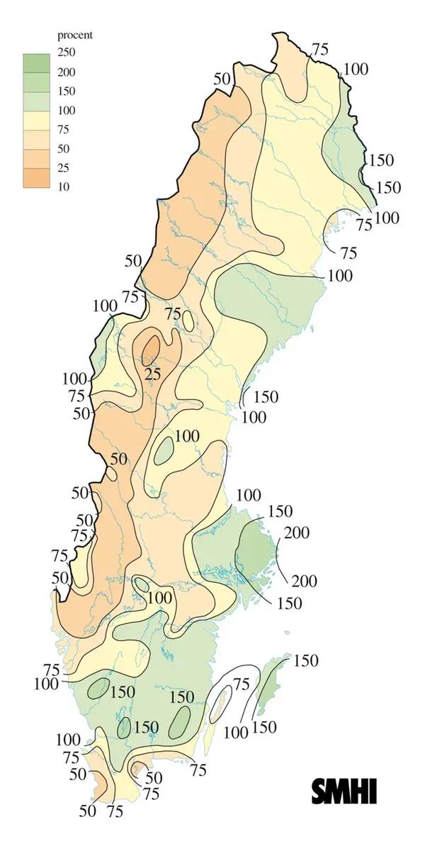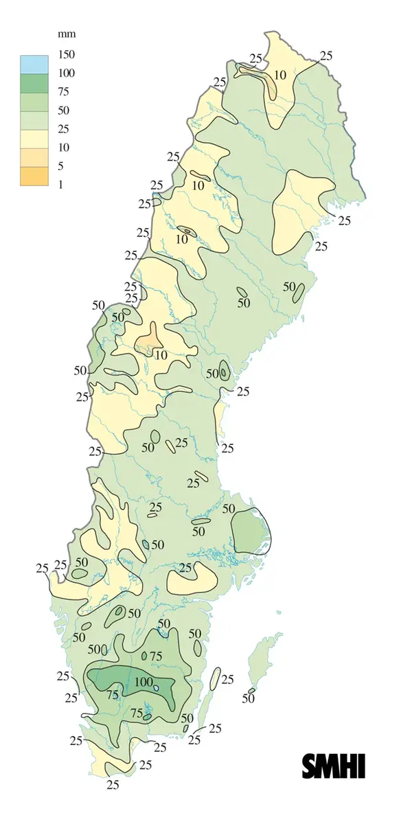 Torrast var det i de västra delarna av Sverige, där exempelvis Östersund-Frösön bara fick 7 mm. Man får gå tillbaks till 1965 för att där hitta en torrare maj, och av de senaste 103 majmånaderna har bara fyra varit torrare än årets.