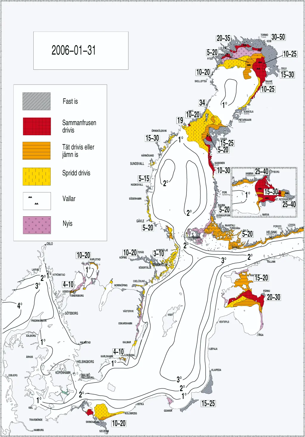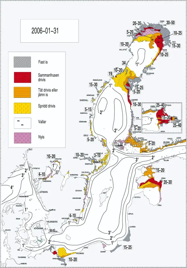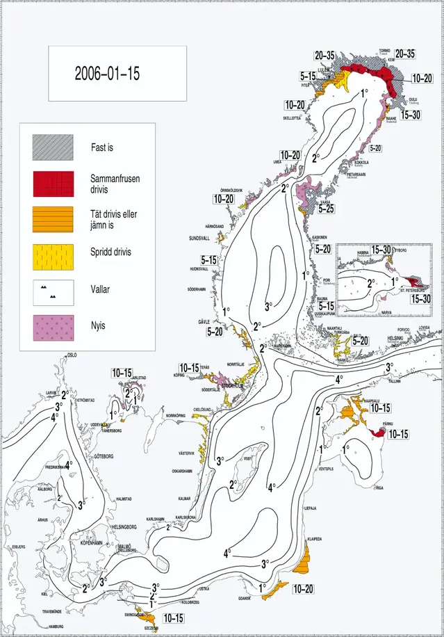 Tunn is bildades därmed på Skärgårdshavet, i Stockholms skärgård, på Mälaren och i norra Vänern samt längs polska och tyska Östersjökusten. Avkylningen av ytvattnet i Östersjön och på Bottniska viken sköt fart i slutet av månaden.
