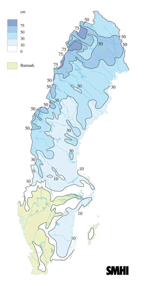 Snödjupet ökade till 65-80 cm på en del håll i de östra delarna av Hälsingland, Medelpad och Ångermanland.