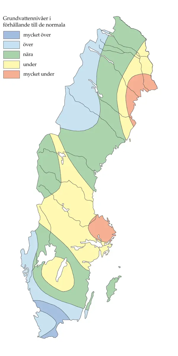 Markvatten och grundvattennivåerna var i stort normala över hela landet. I Götaland, delar av Svealand och Norrland samt i Norrbottens län var grundvattennivåerna dock under eller mycket under de normala.