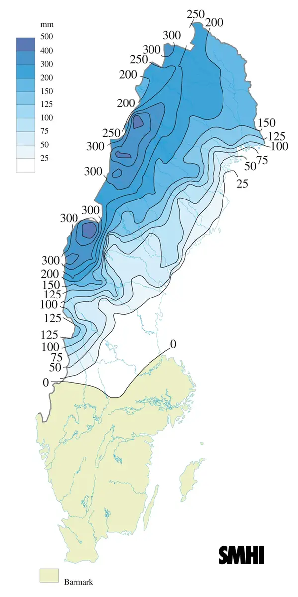 Sammanhängande snötäcke fanns i Norrland och nordvästra Svealand. I Norrlands fjälltrakter och inland var i regel snötillgången större än normalt.