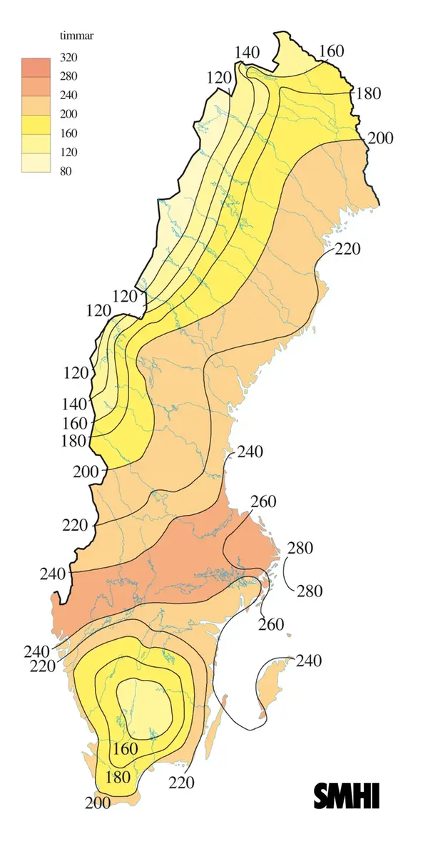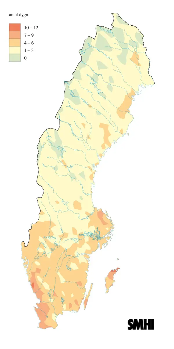 Kartorna ovan är framtagna med hjälp av SMHIs blixtpejlssystem. För att en blixtregistrering ska räknas som åska för en viss ort, gäller att registreringen har skett inom ett avstånd på 15 km från denna, eftersom det är det största avstånd inom vilket åska normalt kan höras.
