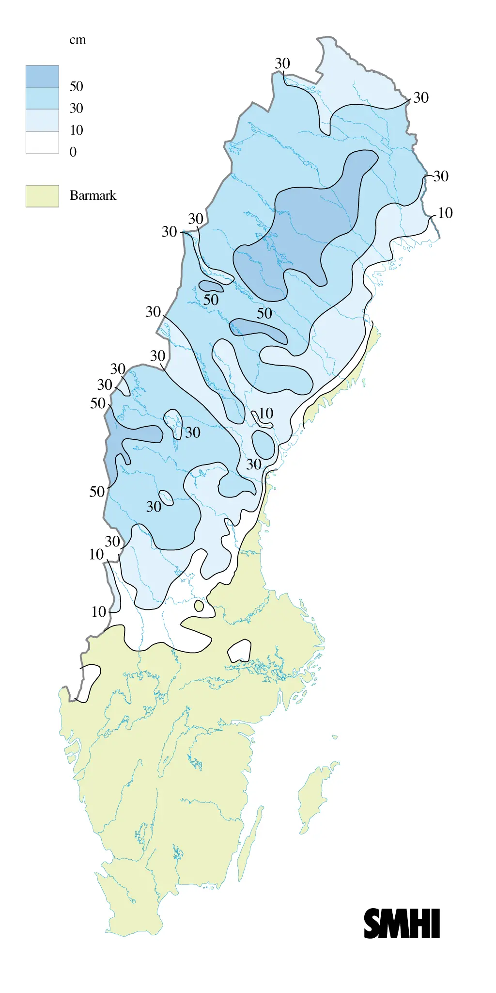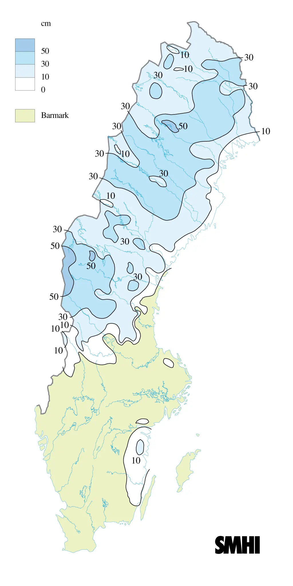 På morgonen den 2 låg ett par decimeter nysnö på flera håll i Dalarna och inre delarna av södra Norrland.