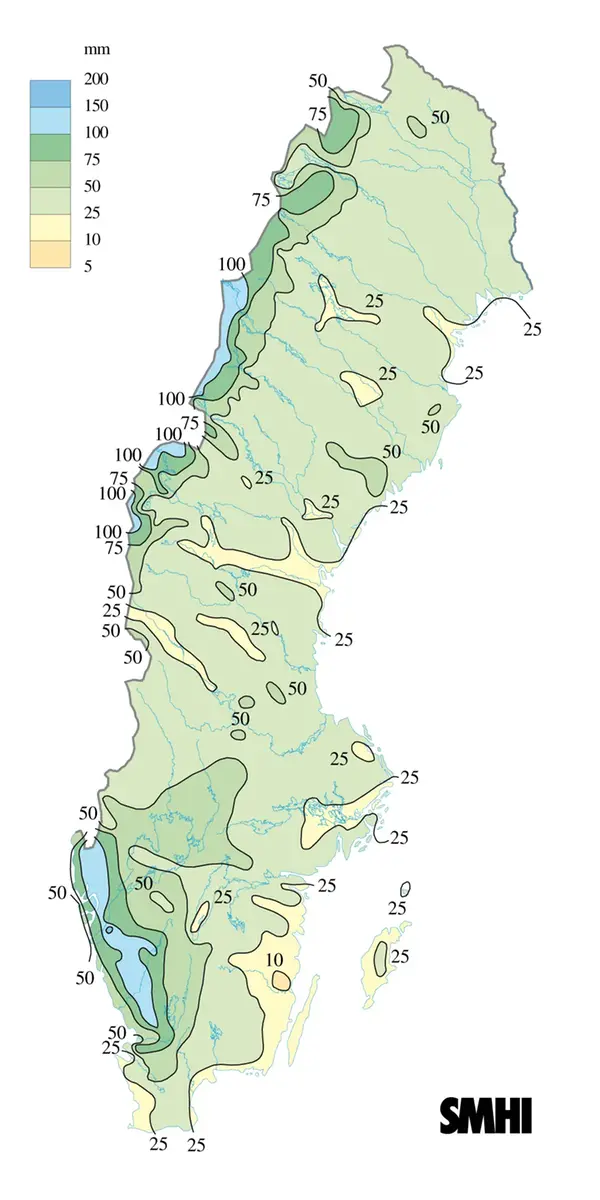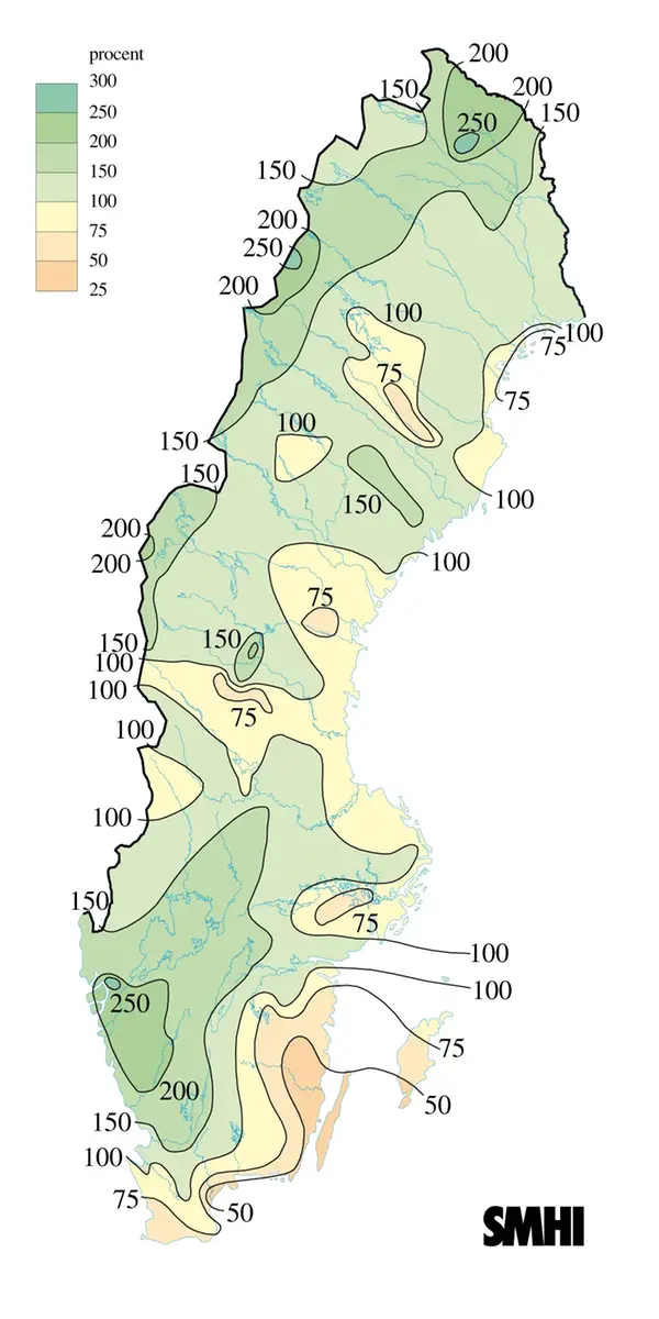 Vid Götalands ostkust blev det i stället en torr månad Delar av fjällkedjan fick en nederbördsrik månad då nord- och nordvästvindarna bidrog med snö.