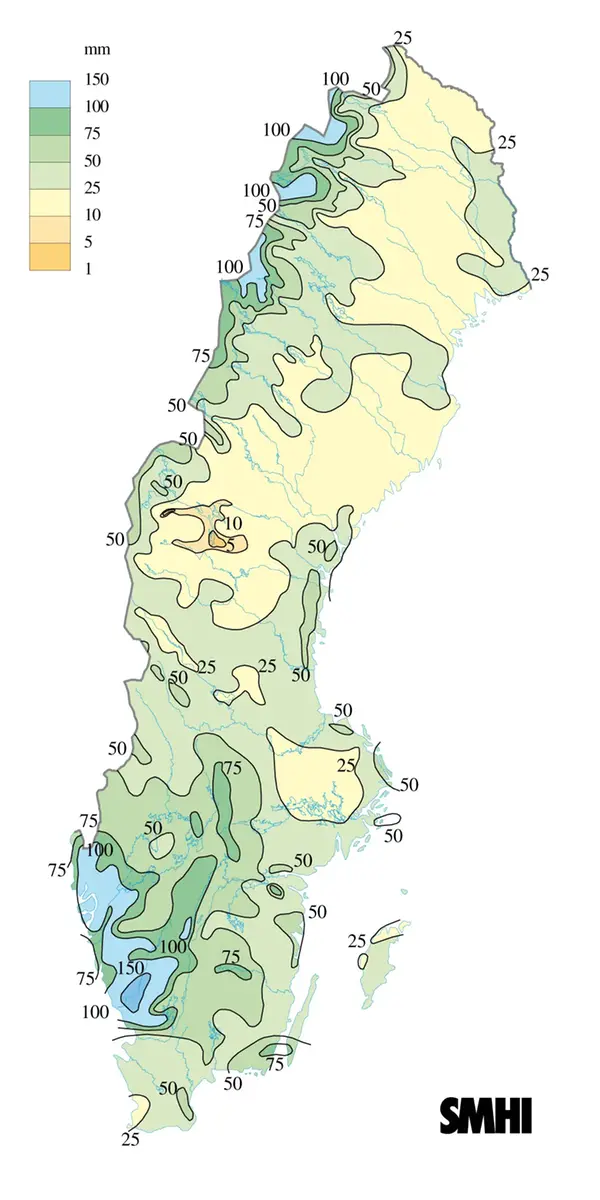 Än mindre, 8 mm, fick Rösta nära Östersund. Där får man gå tillbaka till 1967 för att hitta en torrare september. De senaste åren har september ofta varit väldigt torr såsom åren 2005, 2003, 2002 och 2000.