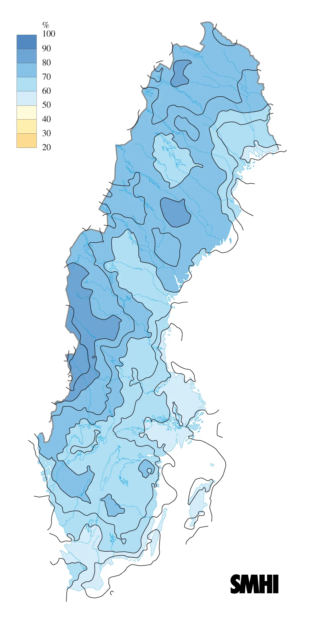 Stora områden sydväst om Linköping fick över 40 mm den 5 och den 8 föll det stora mängder regn i norra Västmanland och södra Dalarna. Munktorp i Västmanland fick då hela 90 mm och Borlänge 86 mm.