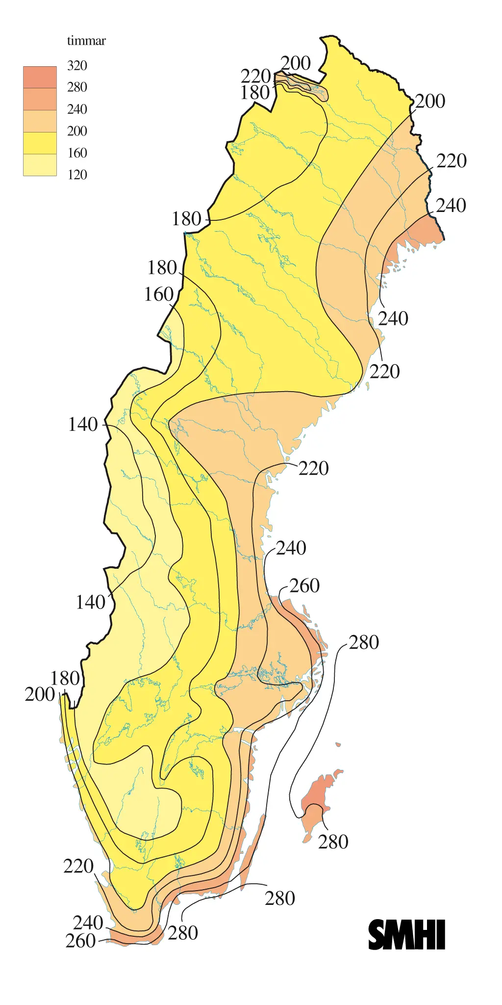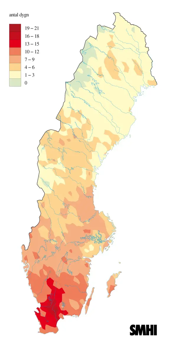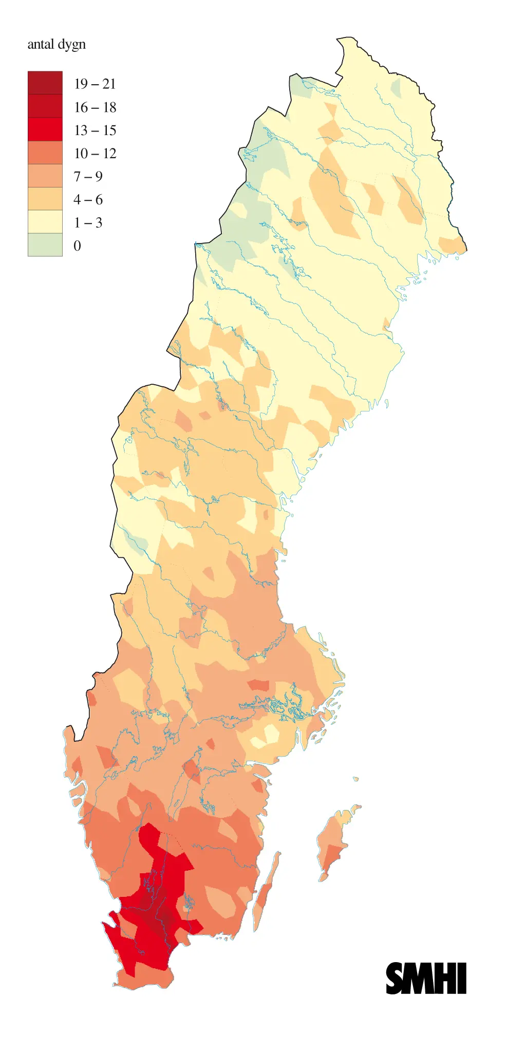 Kartorna ovan är framtagna med hjälp av SMHIs blixtpejlssystem. För att en blixtregistrering ska räknas som åska för en viss ort, gäller att registreringen har skett inom ett avstånd på 15 km från denna, eftersom det är det största avstånd inom vilket åska normalt kan höras.