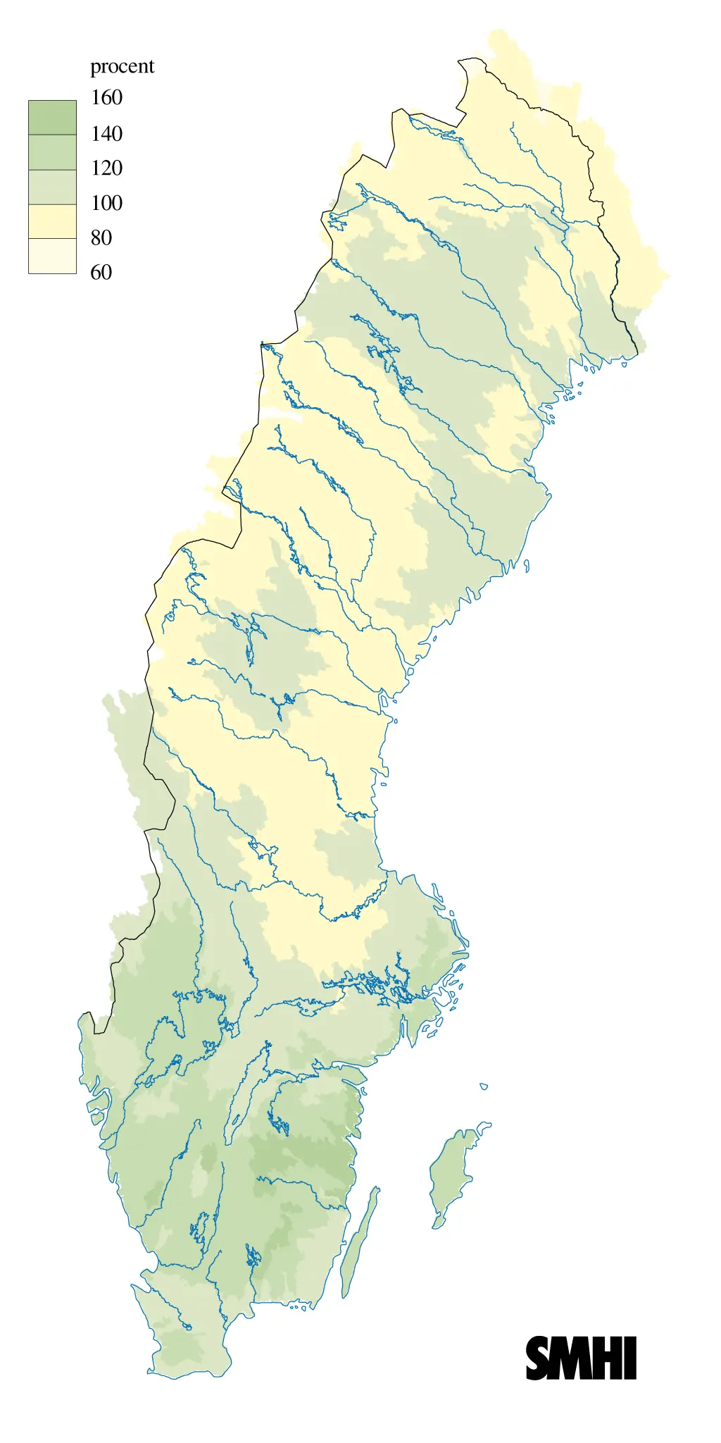 Nivåer nära de normala har noterats i större delen av Norrland samt i nordöstra Svealand. I sydvästra Norrland, i större delen av Svealand och Götaland var nivåerna över eller mycket över de normala. I Skåne var de till största delen under de normala.