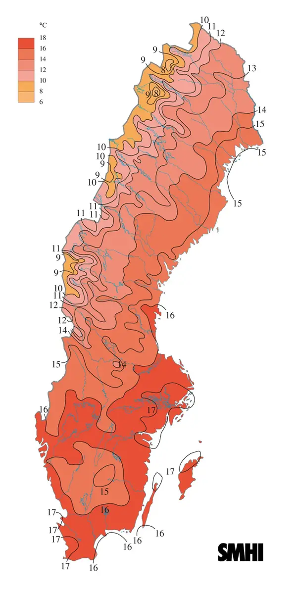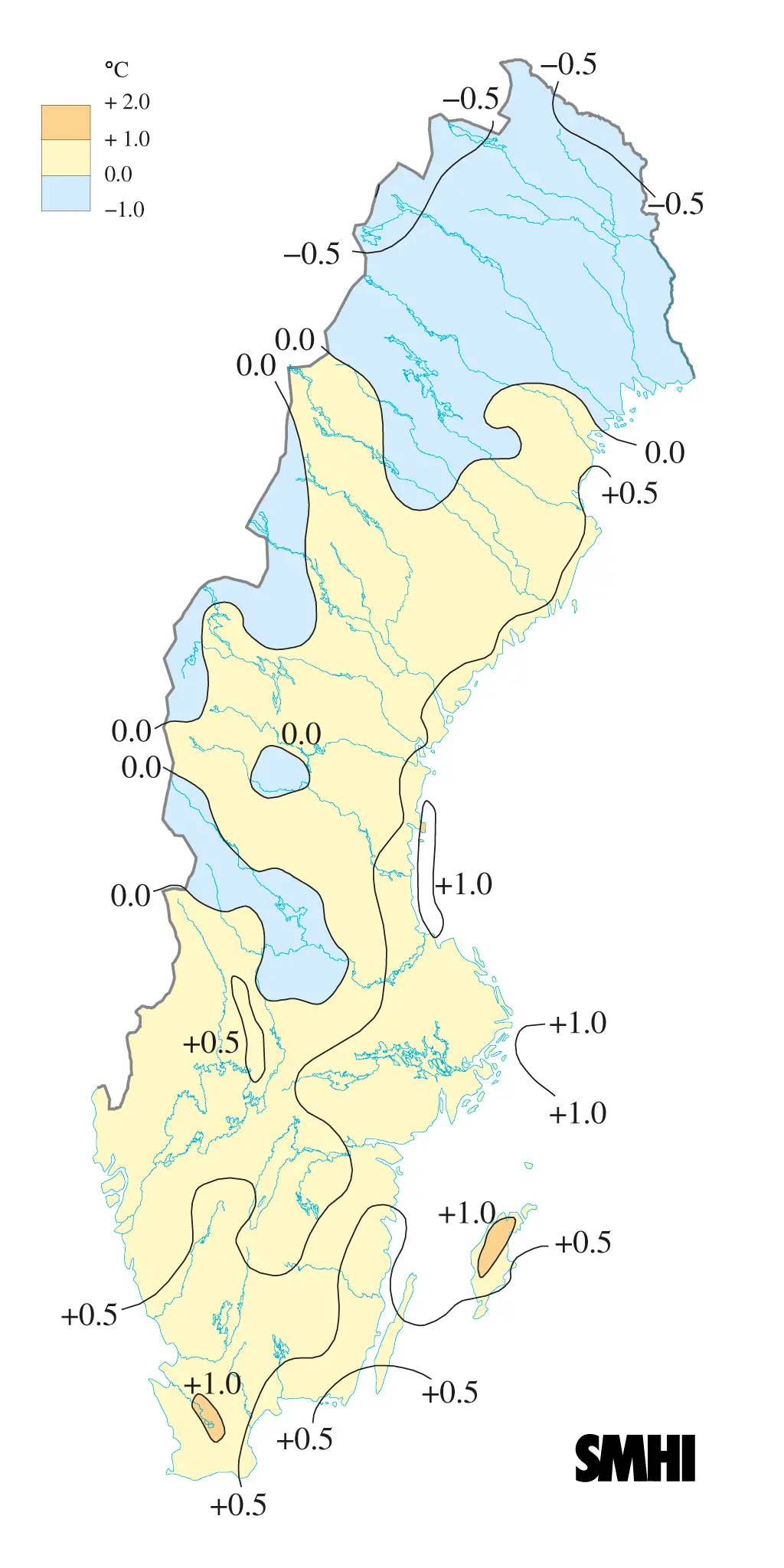 | Götaland | +3.4° den 22 Horn (Östergötland) |