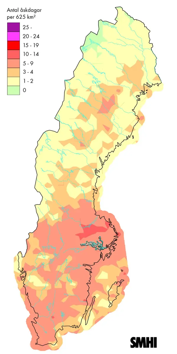Varmfronten följdes av stigande dagstemperaturer. Den 5 hade Östmark-Lämbacken i Värmland 27° och Forse i Ångermanland 26°. Följande dag var det 27° upp till Älvsbyn i Norrbotten. Men samtidigt kom en kallfront med åska in över nordligaste Sverige, och ett annat område med regn och åska kom in i söder.
