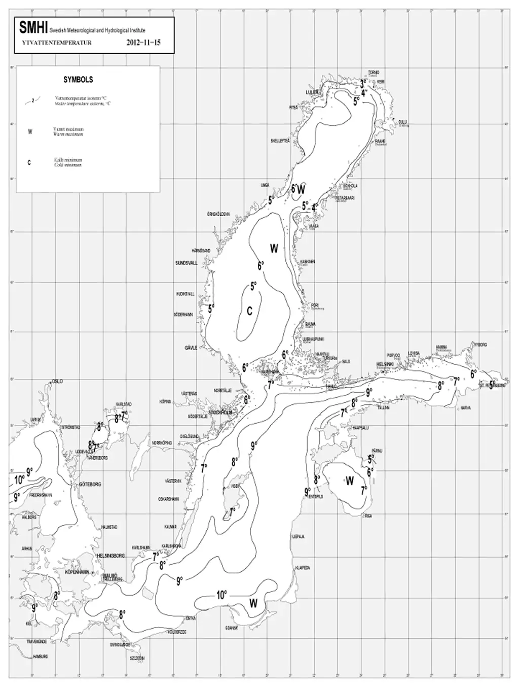 Det är vanligt att issäsongen startar i slutet av november, och så alltså även i år. Men trots en normal start på tillfrysningen under månaden blev det ett förhållandevis stort värmeöverskott i ytvattnet i Östersjön. Månadsmedelvärdena blev över de normala vid alla bevakade stationer.