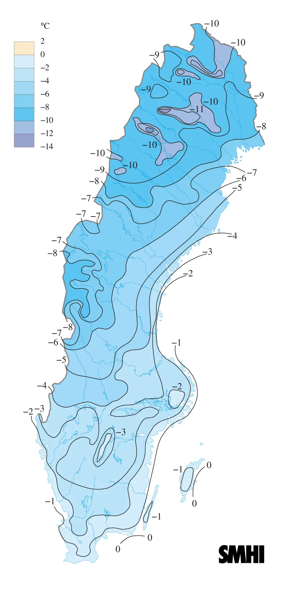 Den 9 fortsatte snöfallet över Götaland, Svealand och Norrlandskusten, medan det i nordvästra Norrland var fortsatt klart och kallt. Det var då ett temperaturunderskott på mer än 10 grader i nordvästra Lappland.