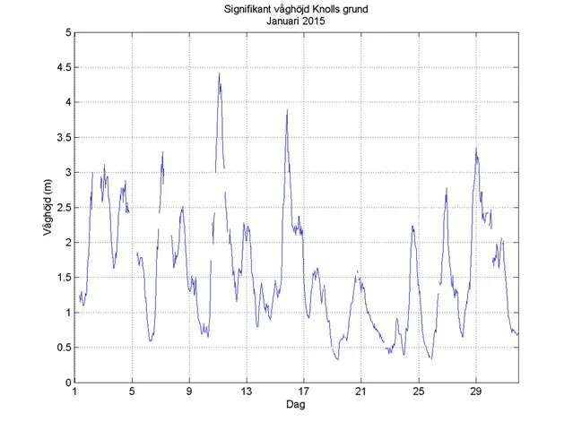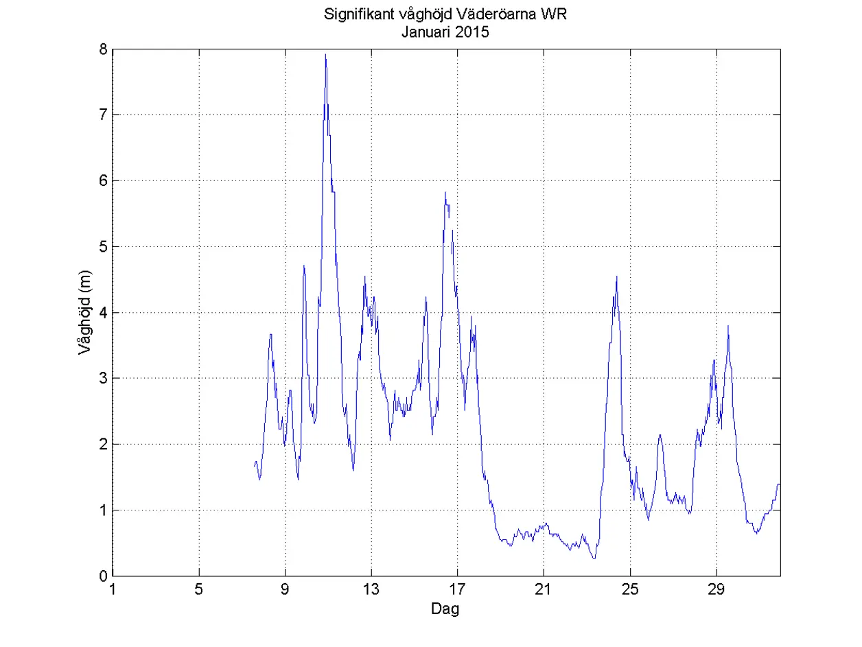 *Signifikant våghöjd är medelhöjden för tredjedelen högsta vågor under tidsintervall som i dessa mätserier är 10-20 minuter. Avbrott i mätserierna förekommer.