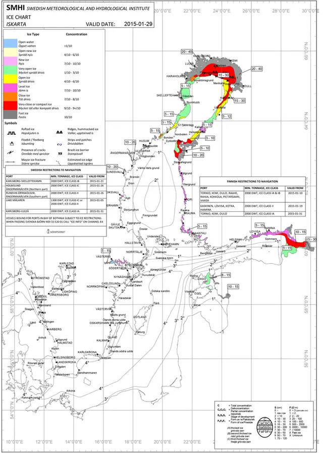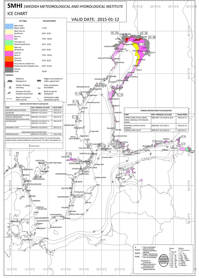 Utanför skärgårdarna fanns då sammanfrusen drivis 15-30 cm endast norr om linjen Farstugrunden–Kemi 1. Till sjöss i övrigt var det nyis och issörja i Skelleftebukten, annars isfritt.