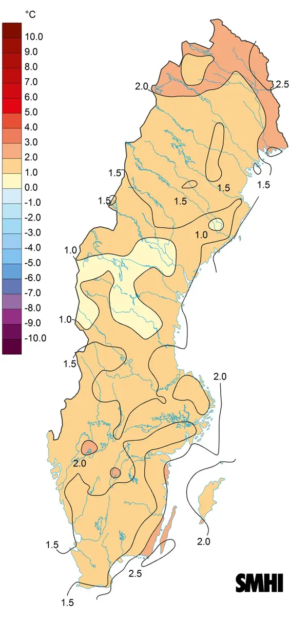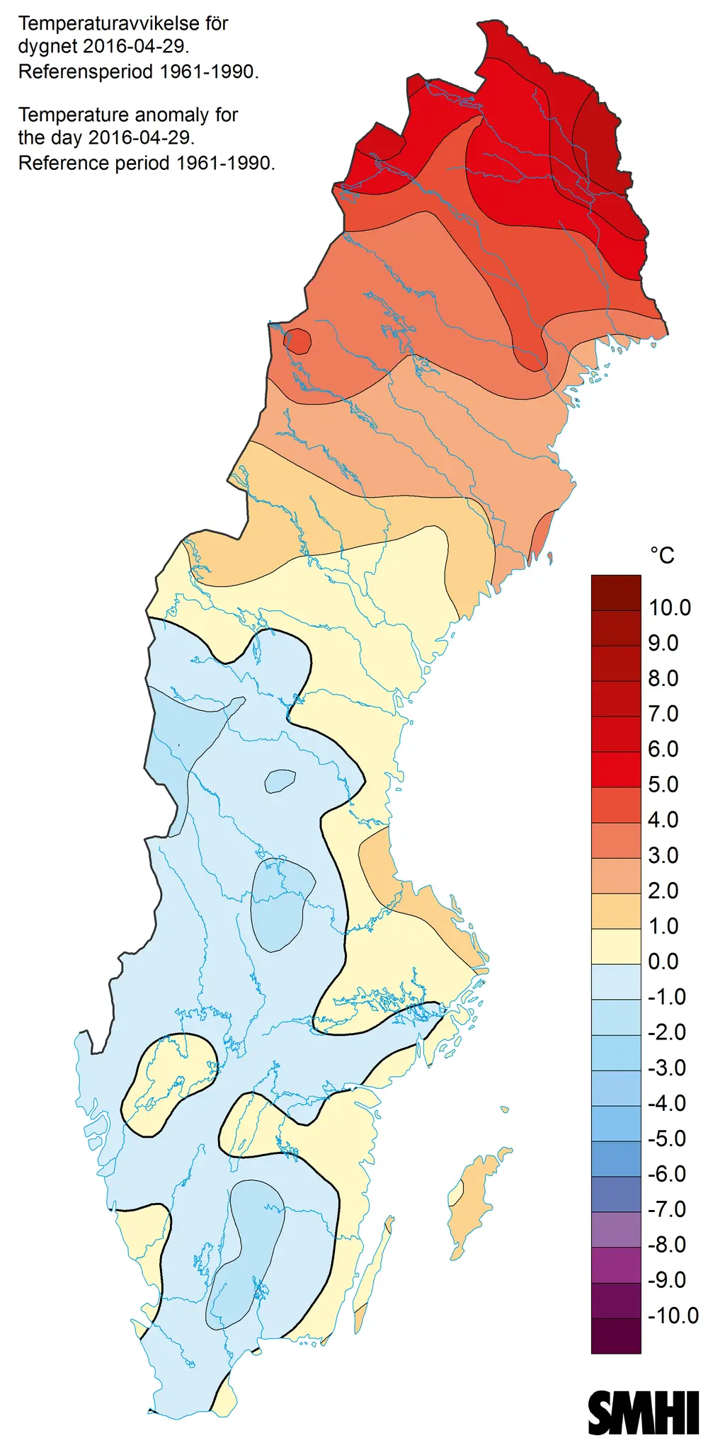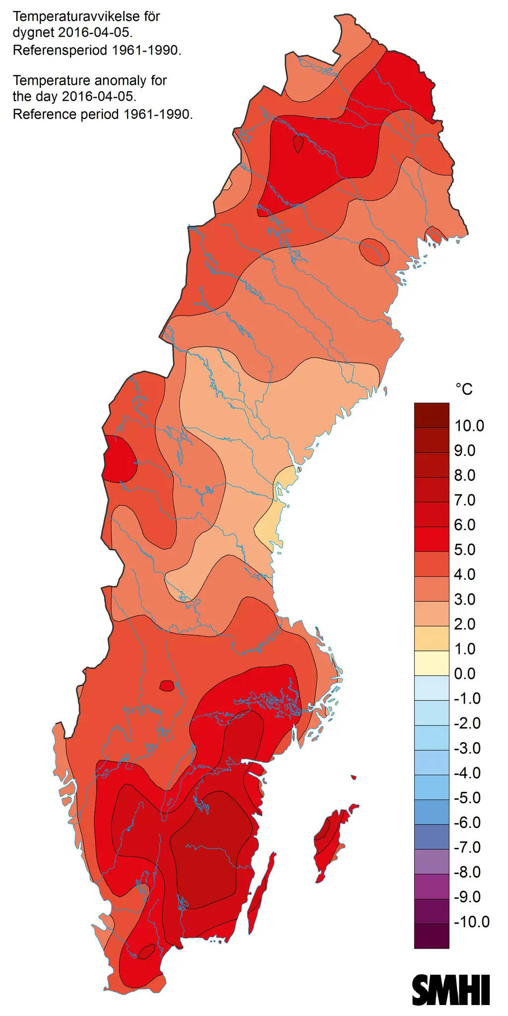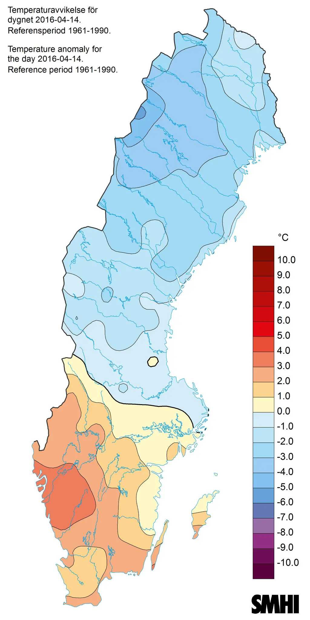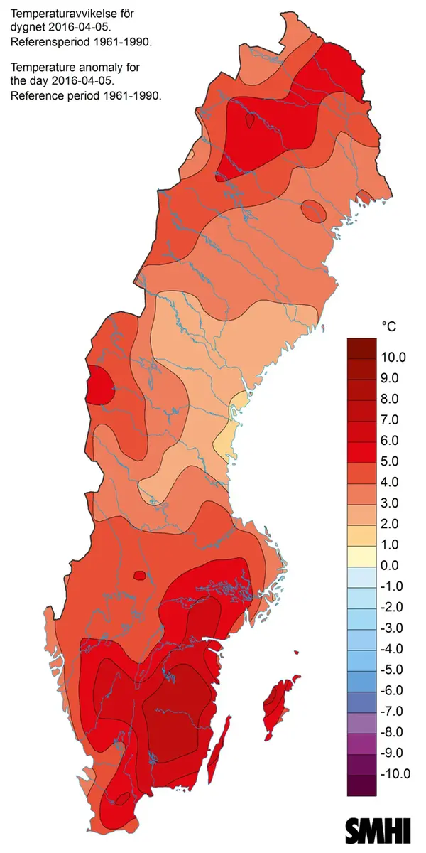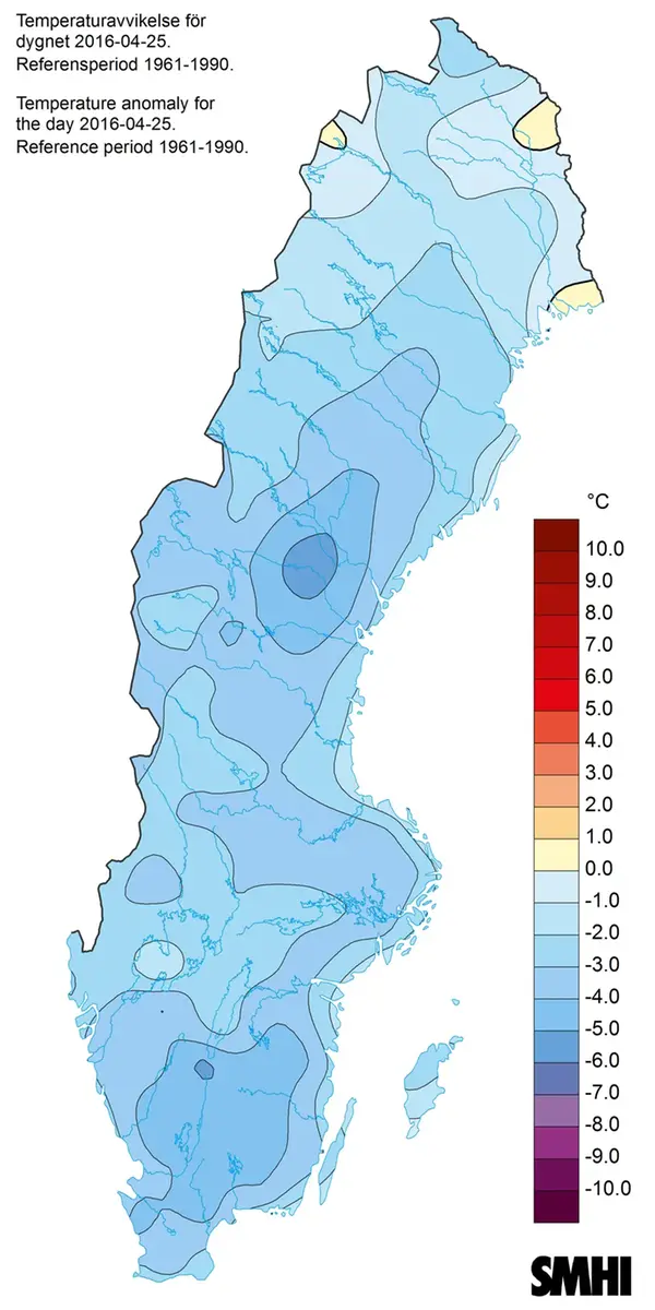 Trots den rätt kyliga avslutningen blev april som helhet 1 till 2 grader varmare än normalt (1961-1990).