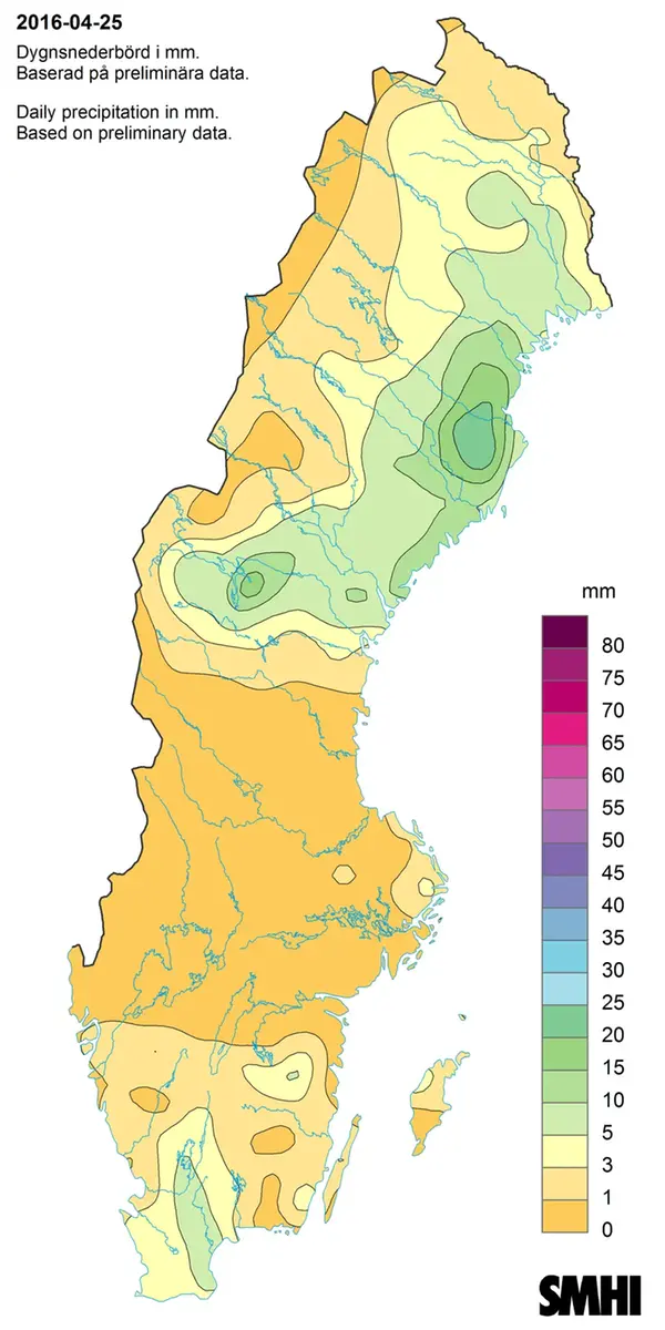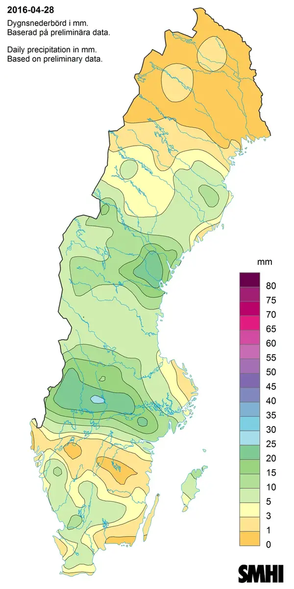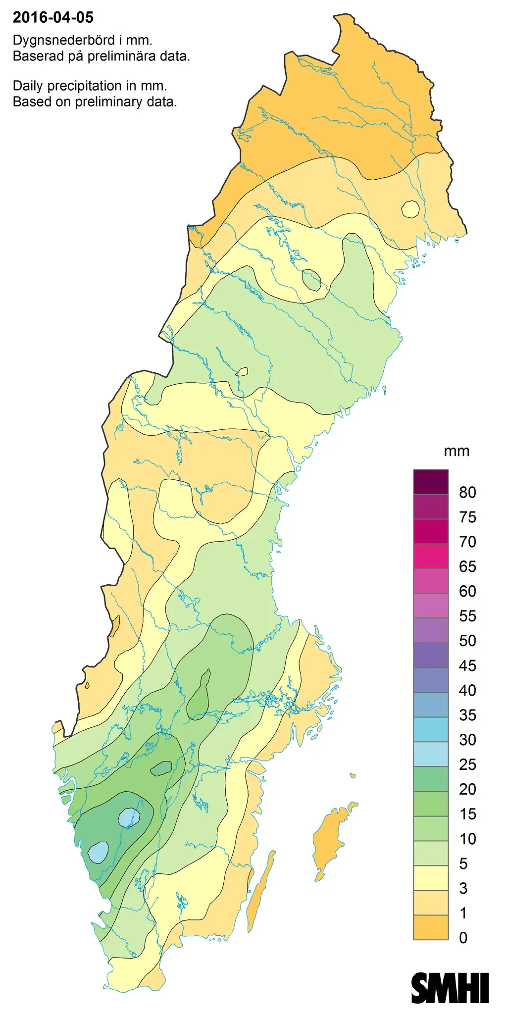 Detaljerad tabell över temperatur och nederbörd vid 15 stationer i april 2016 Pdf, 86.8 kB.