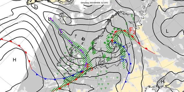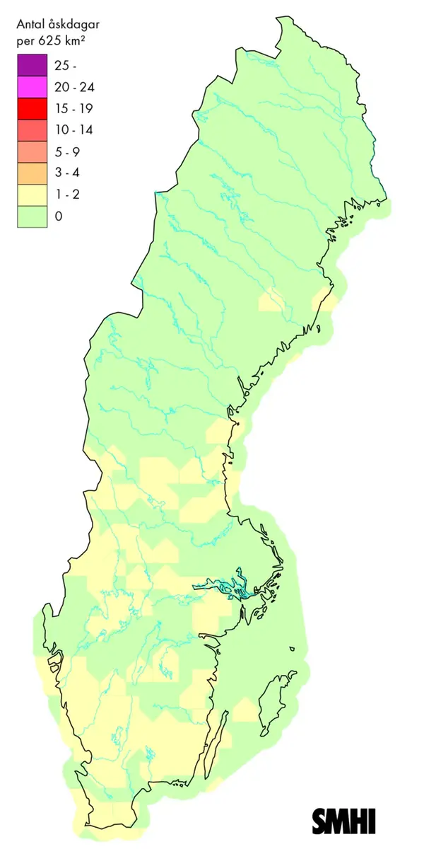 Förstora bildenDen 6 fortsatte lågtryckscentrum upp över Norrlandskusten och i Forse i Ångermanland uppmättes 27 mm regn.