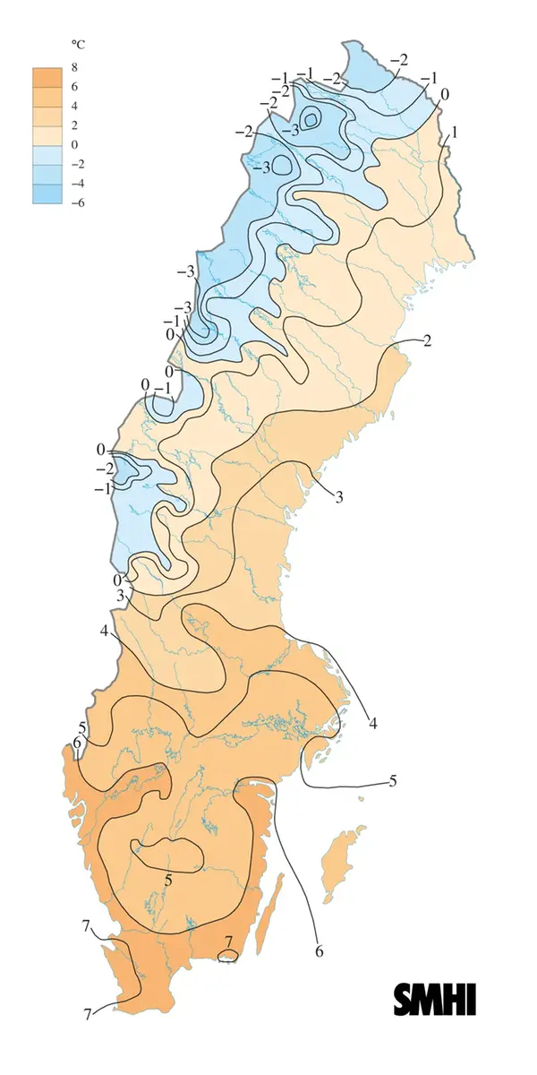 Götaland | -7.3° den 25 Jönköpings flygplats (Småland) |