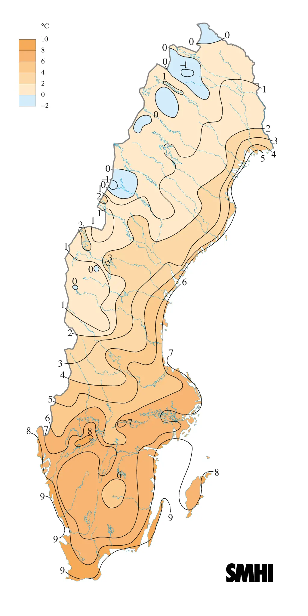 Temperatur – Varmt längst i norr, kallt i sydvästra Norrland