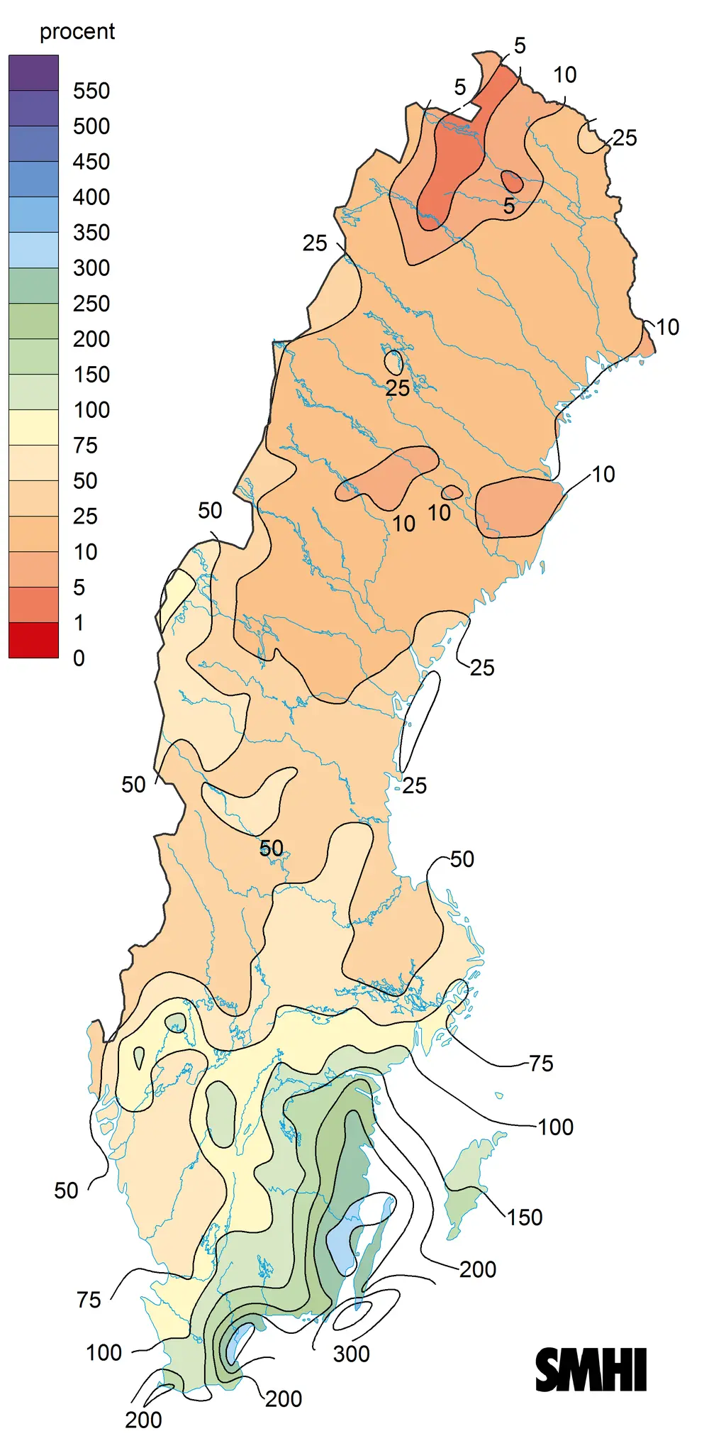 Östra och sydligaste Götaland fick mer nederbörd än normalt för oktober. Senast det kom så mycket nederbörd i oktober i sydost var år 2002 eller i vissa fall 1974.