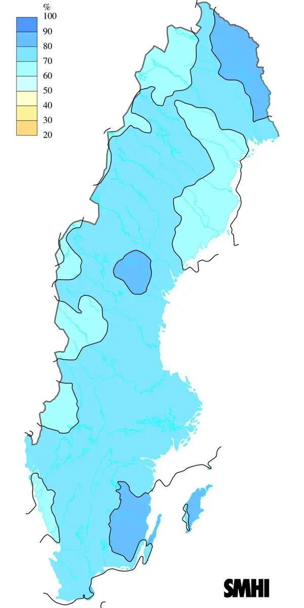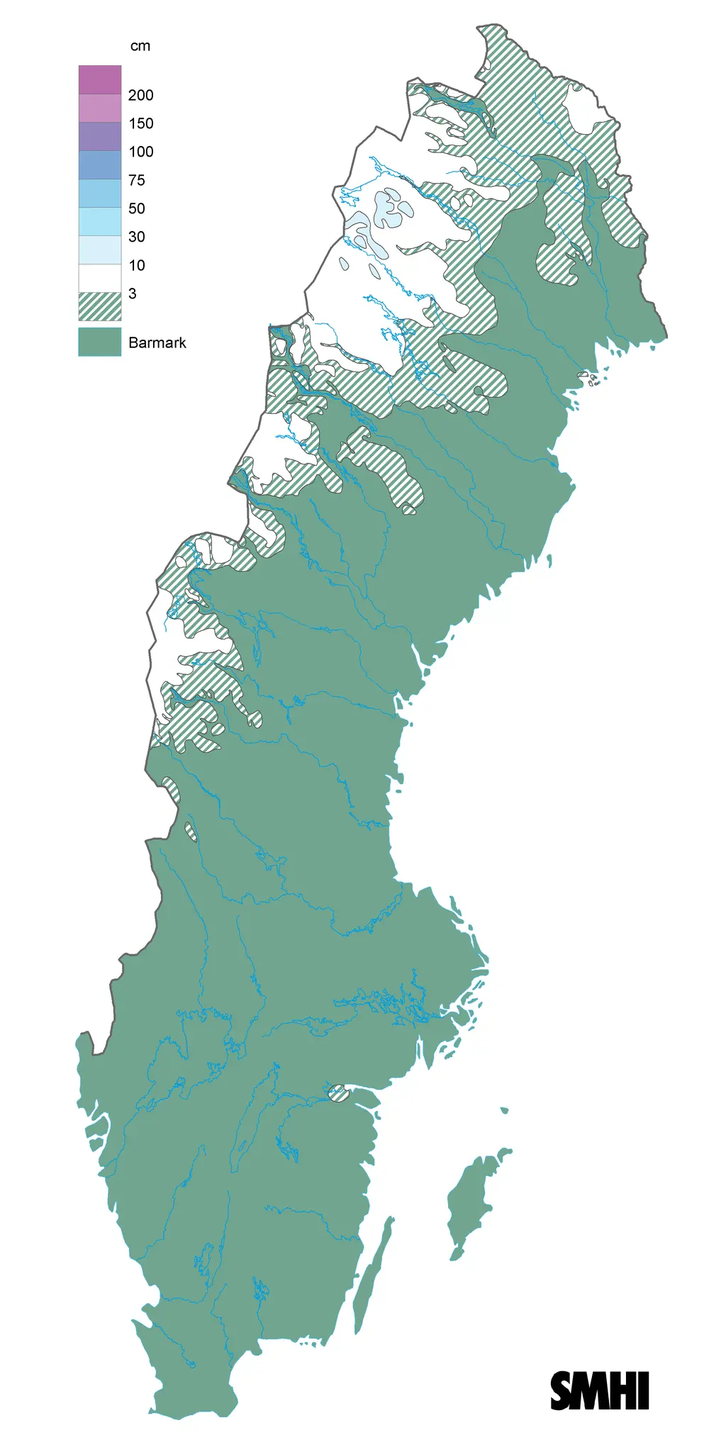 I slutet av månaden låg det 1-10 cm snö på marken i nordvästra Norrland och fjälltrakterna. Delar av norra Lapplandsfjällen hade något mer.