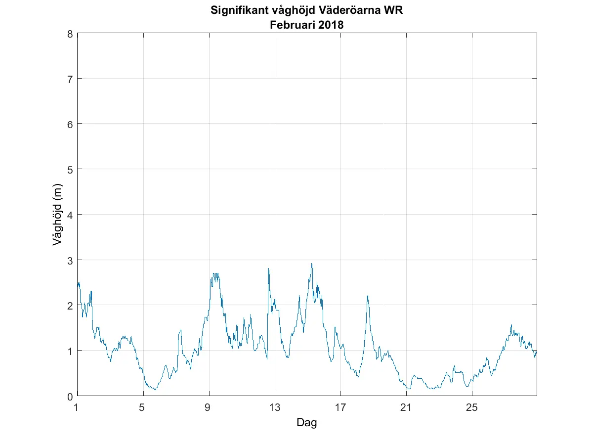 *Signifikant våghöjd är medelhöjden för tredjedelen högsta vågor under tidsintervall som i dessa mätserier är 20-30 minuter. Avbrott i mätserierna förekommer.
