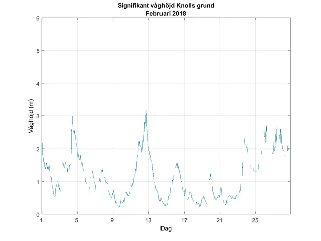 I februari observerades de högsta signifikanta våghöjderna* i de östra farvattnen i början av månaden.
