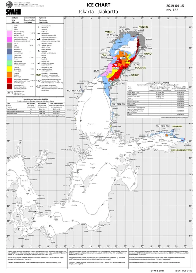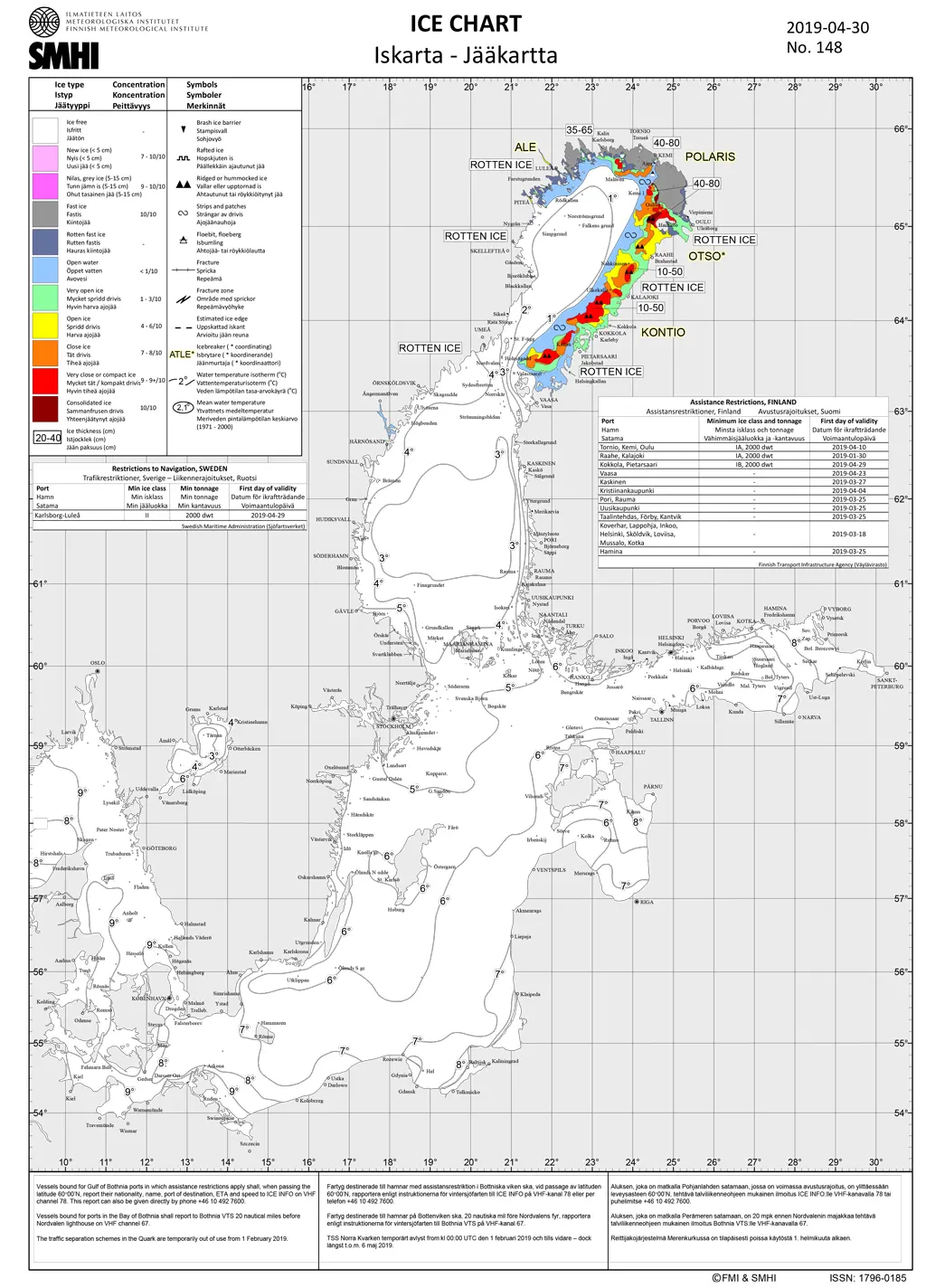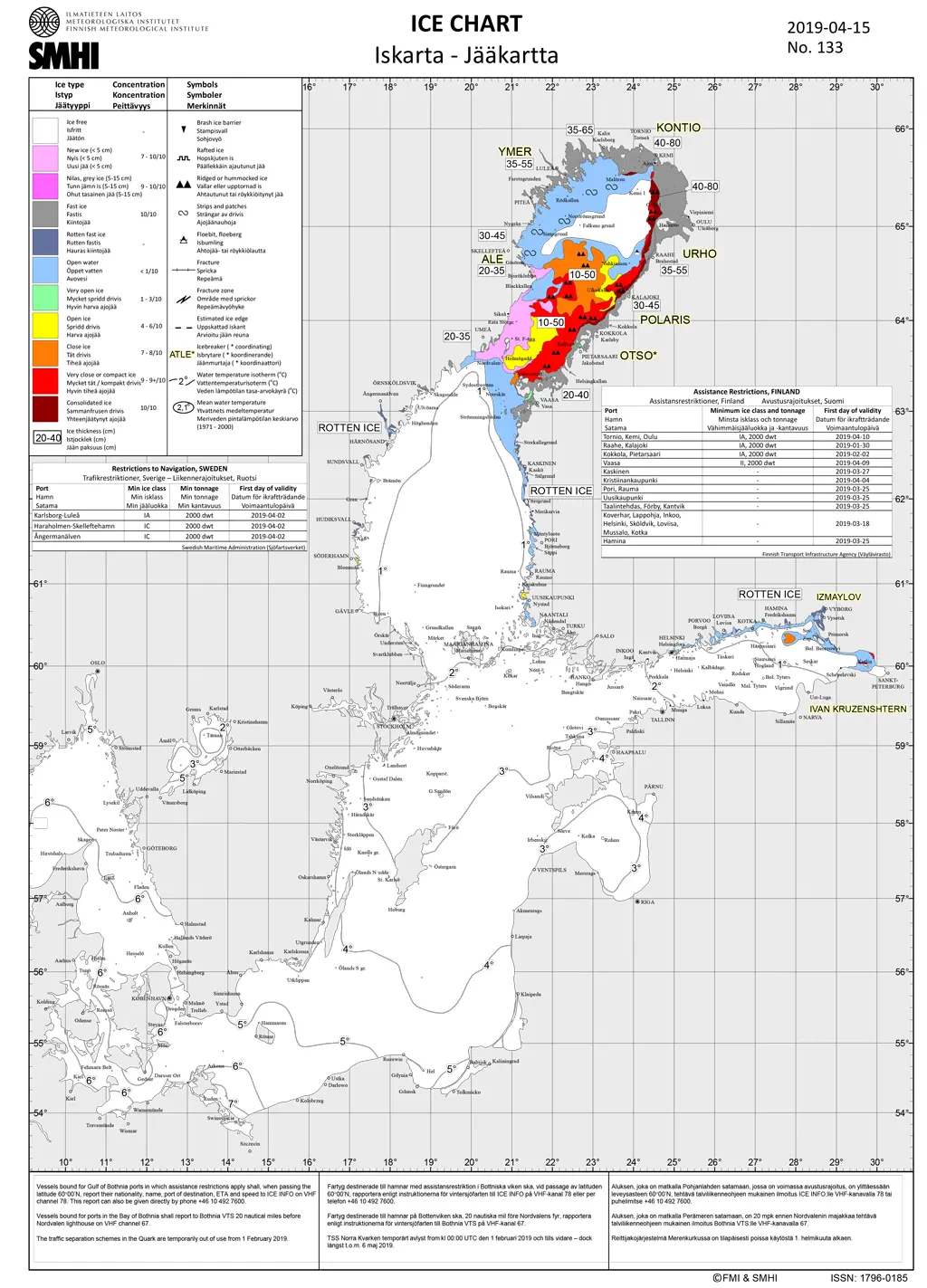 Vid månadens början låg upp till 50 cm tjock drivis längs med Finlands kust i Bottenviken. Ett lågtryck över Finska viken 7-11 april orsakade kraftiga vindar som fick isen att snabbt driva söderut. Norra delen av Bottenviken lämnades öppen och Norra Kvarkens östra del fylldes av drivis.