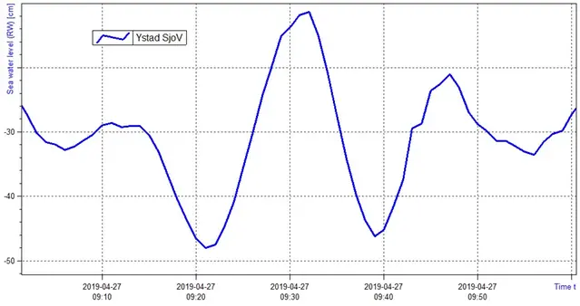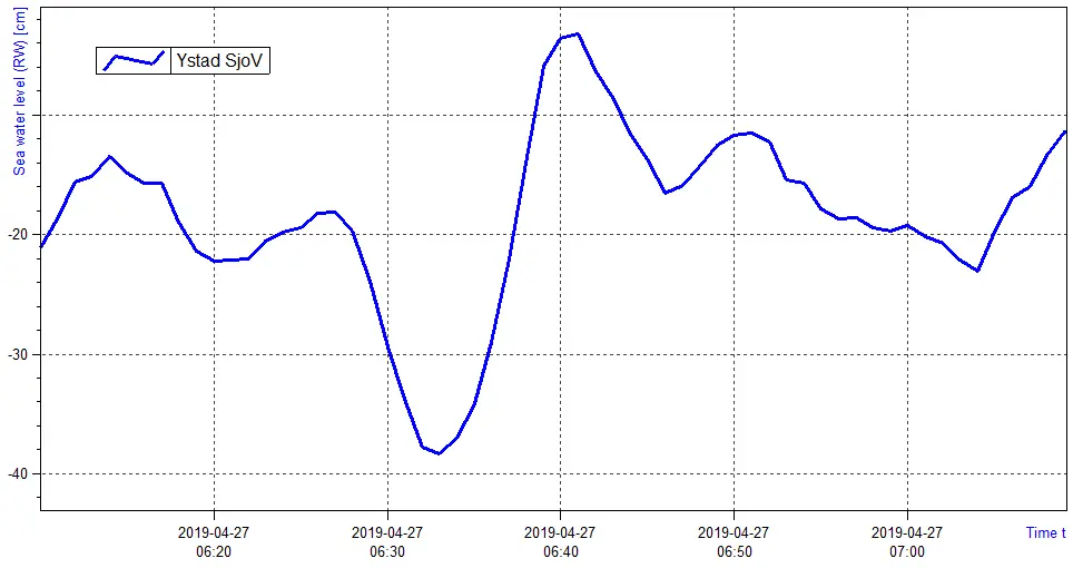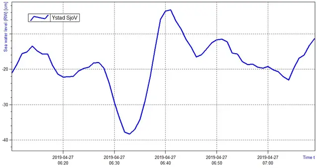 Den 27 passerade ett lågtryckssystem med tillhörande kallfronter. På södra Östersjön var det även åska. I Tyskland rapporterades det om mindre sjösprång och på stationen i Ystad kunde man se en liten tendens till det. Då steg vattenståndet med 35 cm på 7 minuter.