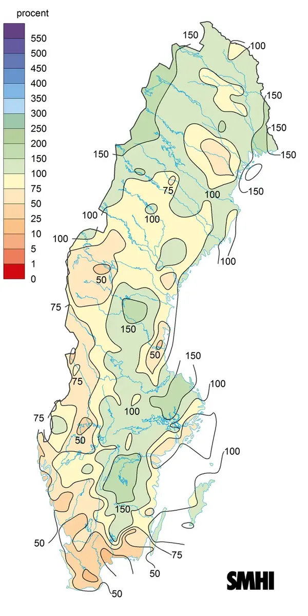 Nederbörd - Torrt längst i söder