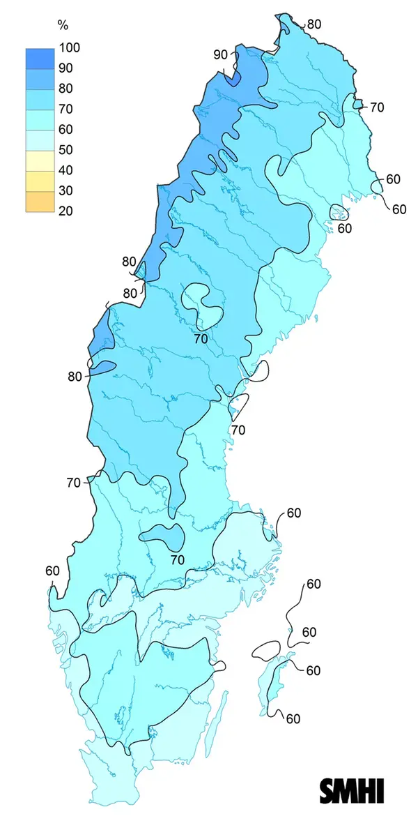 I västra Norrland var inslaget av svala luftmassor större med en mer normal månadsmedeltemperatur. Men där var det kyligare så sent som i augusti ifjol 2021.