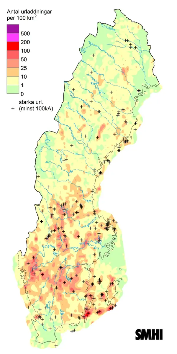 Under den högtrycksbetonade perioden 8-13 augusti var det däremot inga blixtregistreringar i Sverige.