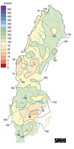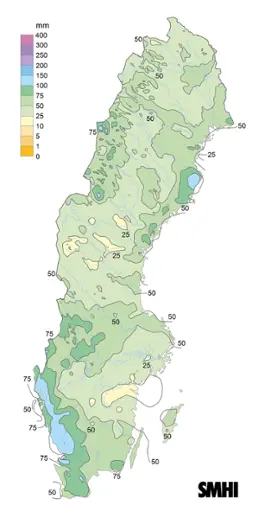 Nederbörd - Torrt i fjällen, nordöstra Götaland och sydöstra Svealand