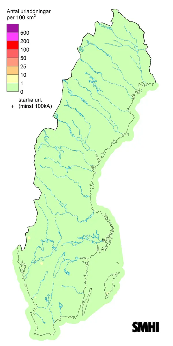 Sverigekarta som visar totalt antal blixtar under december 2022.Förstora bilden