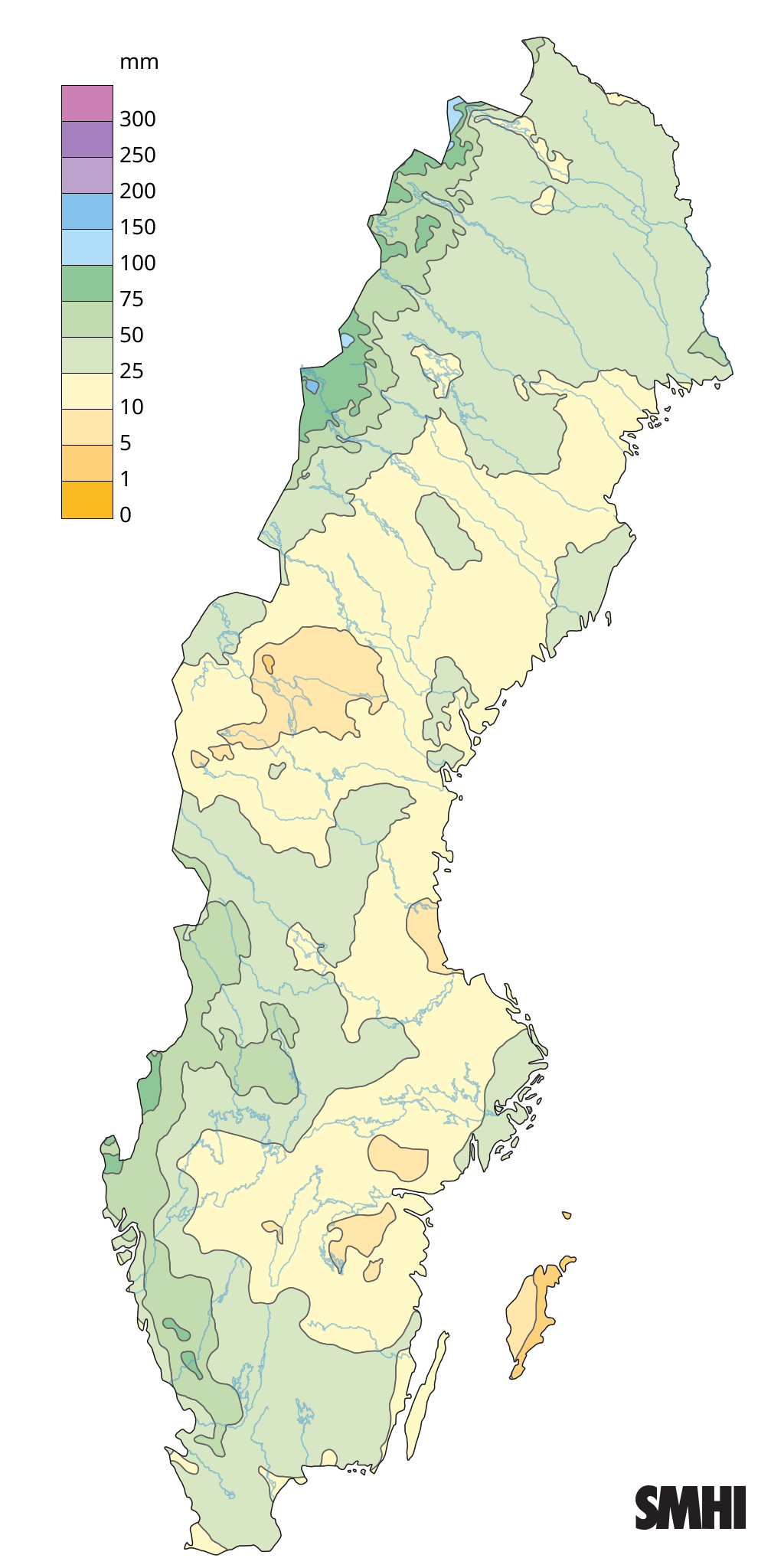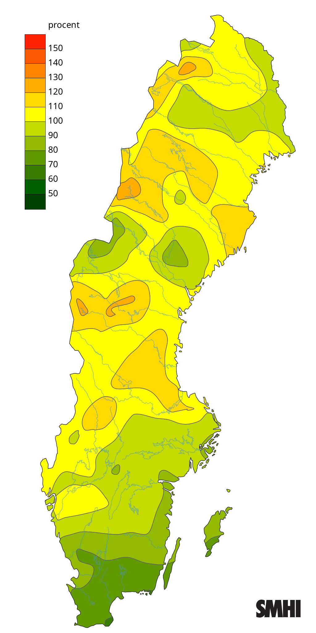 I västra Svealand samt i norra Lappland och Norrbotten var nederbörden nära eller något över det normala jämfört med normalperioden 1991–2020.