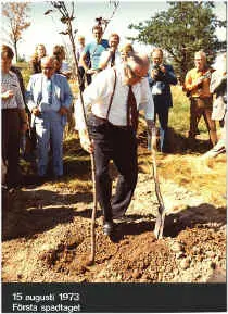 Gunnar Sträng tar första spadtaget till SMHIs nya huvudkontor.