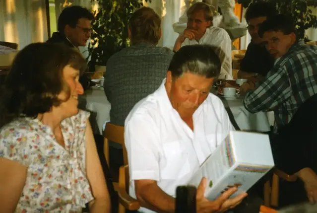 Kollegan Thore Hedlund firas av 1996 på SMHI. Till vänster sitter Gunlög.