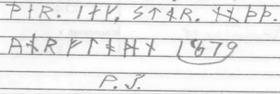 Vad som förbryllar är alltså runorna 9, 11, 12, 15, 16 och 22. Ifall det horisontella strecket i runa 15 ej är avsiktligt erhåller vi tecknet för u eller v. Runa 11 kan vara ett n och runa 22 troligen ett medeltida e då den står mellan d och n.