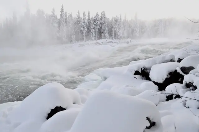 När vatten forsar och har hög hastighet lägger sig inte isen även om det kan vara mycket kallt.