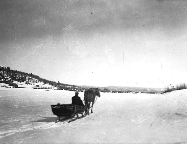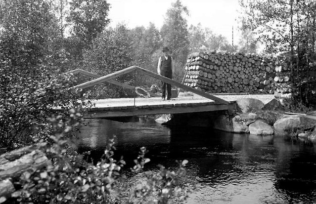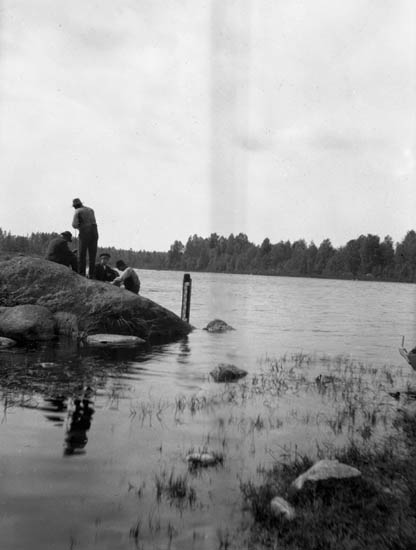 Från Fältbok nr 7, sid 9 (Sandström): 12/6 1908. Foto taget i samband med avvägning. Observatör kommunalordförande John Andersson. Fixen 2 meter från pegeln i den sten vid vilken pegeln står.