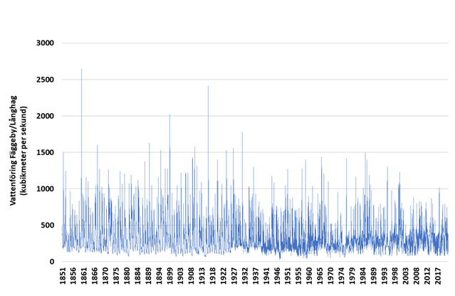 SMHI har många och långa tidsserier för vattenföring i Sverige. Totalt finns cirka 1500 punkter där vattenföring mätts någon gång. Den tidigaste mä...