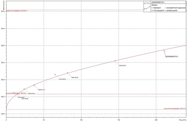- Sambandet mellan vattennivå och vattenföring kan förändras över tid. Eftersom vattenföring beräknas från vattennivån är det viktigt att ha detta i bakhuvudet vid analys av långa tidsserier av vattenföring. SMHI kontrollmäter sambandet med jämna mellanrum för att se att det stämmer. Om det inte stämmer, görs nya mätningar för att ta fram en ny avbördningskurva.