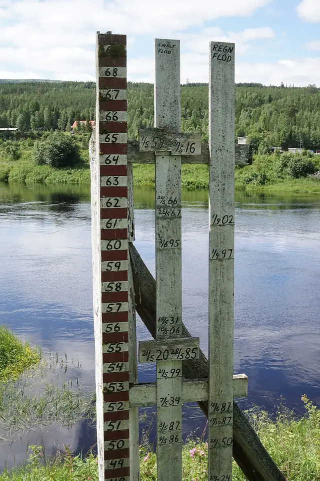 Vid en av SMHIs mätstationer, Svärdsjö i Hökviksån som är ett biflöde till Dalälven, finns en sten med en inristning kopplat till ett högflödestillfälle 1916. Det hör inte till det vanliga att inristningar hittas vid mätplatser. Om mätserien är tillräckligt lång kan man få en uppfattning om hur ovanlig högvattenhändelsen var.