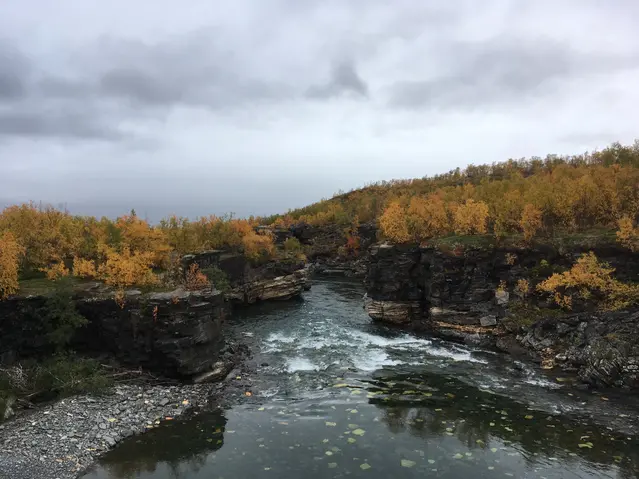 Ett vattendrag vid SMHIs mätstation Abiskojokk. Jokk är en förenkling av lulesamiskans jåhkå och betyder bäck, å eller liten älv.