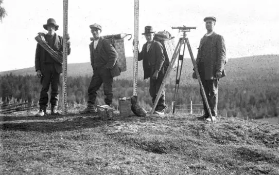 Hydrologiskt fältarbete på tidigt 1900-tal.