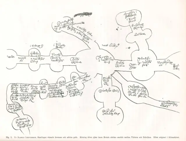 Under 1500-talet utförde Rasmus Ludvigsson en undersökning och förteckning över kronans och adelns gods. Figuren nedan är efter original i Riksarkivet och visar en ritning över sjöar inom Motala ströms område mellan Vättern och Bråviken.
