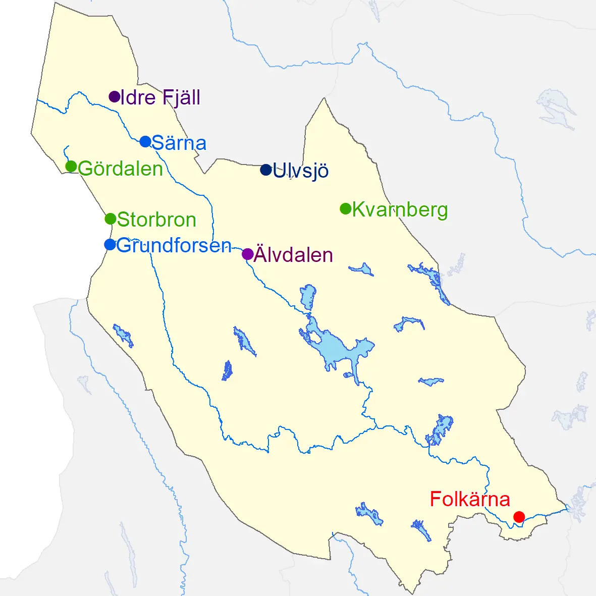 Den lägsta temperaturen, tillika den lägsta i Svealand, är -46,0° i Grundforsen den 1 januari 1979. Lika kallt, -46,0°, var det i Särna den 3 januari 1941.