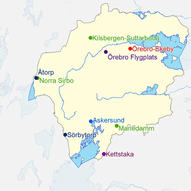 Den högsta temperatur som uppmätts i Närke är 36,0°. Så mycket hade Örebro-Ekeby den 7 augusti 1975. Tillsammans med Sala i Västmanland delar man därmed Svealands värmerekord för augusti.