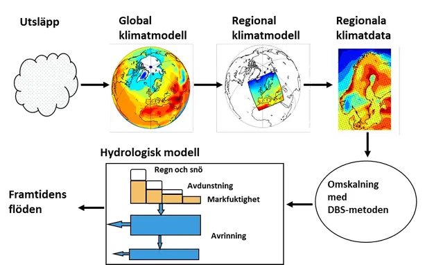 För att ta fram ett klimatscenario krävs en lång kedja av antaganden och beräkningar. Det innefattar klimatmodeller och antaganden om atmosfären.
