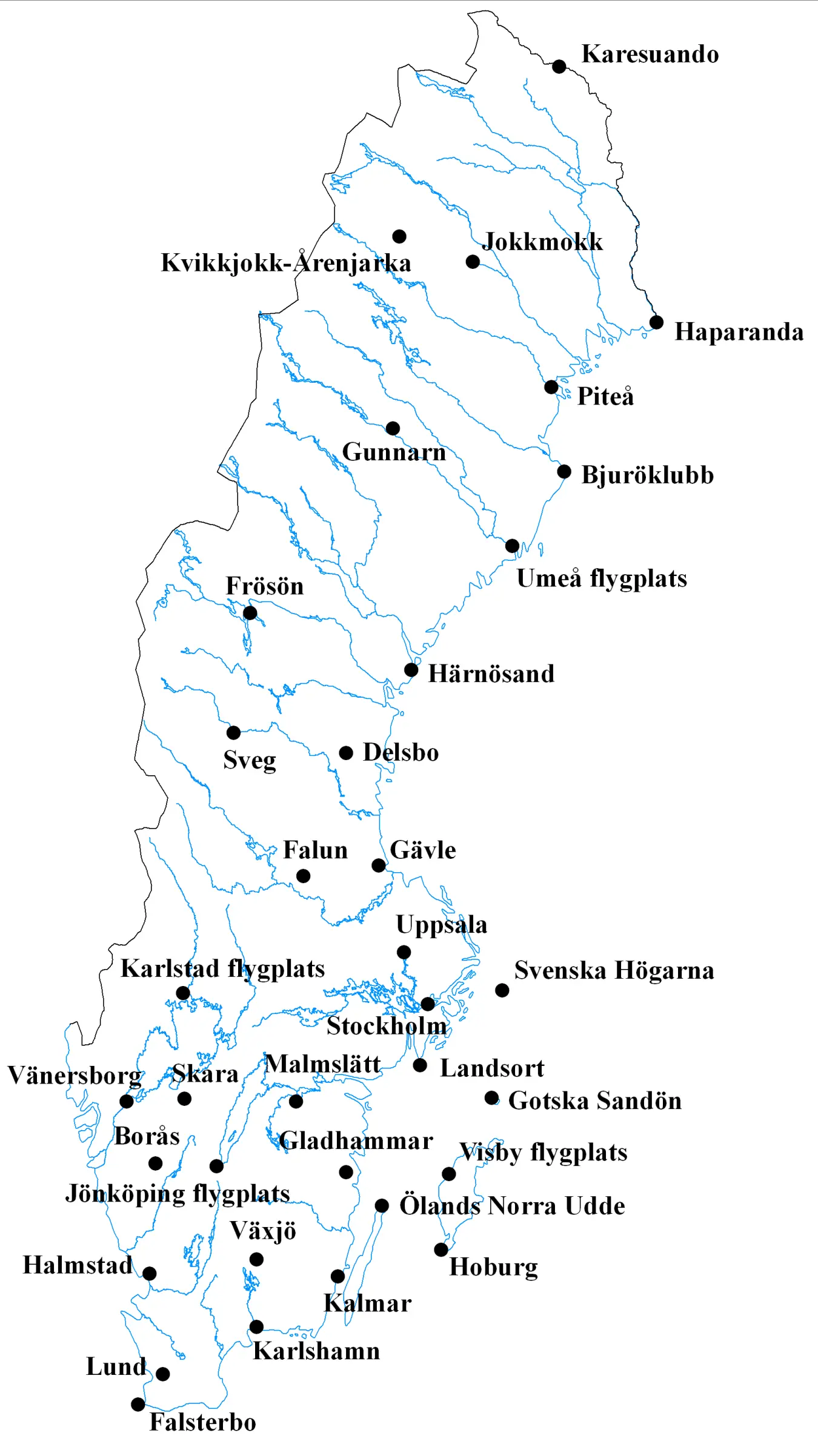 Äldre metod för beräkning av medeltemperaturen för Sverige